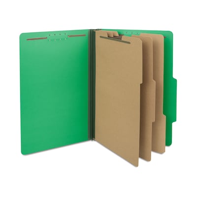 Quill Brand® 2/5-Cut Tab Pressboard Classification File Folders, 3-Partitions, 8-Fasteners, Legal, Green, 15/Box (745034)