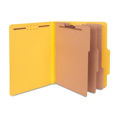 Quill Brand® 2/5-Cut Tab Pressboard Classification File Folders, 3-Partitions, 8-Fasteners, Letter, Yellow, 15/Box (744038)