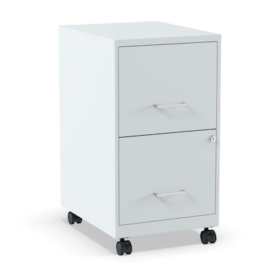 Mobile two-drawer file cabinet is designed for small office or home office use. The cabinet features a smart, efficient design that works well in small spaces and fits under most work surfaces or desks. Each drawer features high sides to accommodate letter-size hanging files. The drawers are also a perfect storage solution for other office essentials. Using a patented glide suspension, the drawers have a smooth open and close slide with a three-quarter drawer extension to prevent tipping. In addition, you can keep your files and possessions secure by using the built-in lock for both drawers. The additional wheels that come with this file cabinet are both stylish and functional which makes it easy to move around your home or office. Painted steel surface is non-porous and easy to clean and disinfect. Bring organization and function to your home or office with this stylish mobile two-drawer file cabinet. Your supplies and files will always be organized and within reach.