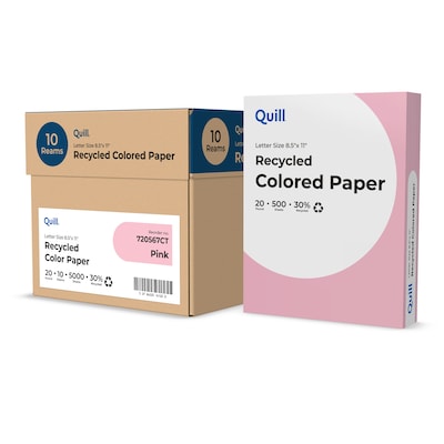 Quill Brand® 30% Recycled Colored Multipurpose Paper, 20 lbs., 8.5" x 11", Pink, 500 Sheets/Ream, 10 Reams/Carton (720567CT)
