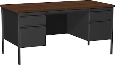 Quill Brand® 60"W Walnut Laminate Fortress Series Desk with Double Pedestal