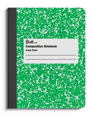 Write down key information while keeping it safe and secure in this composition notebook. Featuring a tough heavyweight cover, this composition book is center-sewn and permanently bonded, ensuring sheets don't loosen or fall out. The standard size of this Quill Brand 7.5 x 9.75-inch green and white graph-ruled composition notebook is ideal for taking to meetings or lectures.