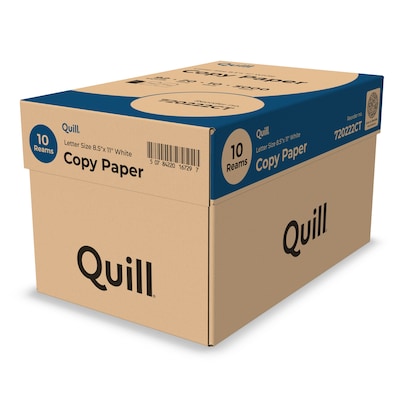 Quill Brand® 8.5" x 11" Copy Paper, 20 lbs., 92 Brightness, 500 Sheets/Ream, 10 Reams/Carton (720222CT)