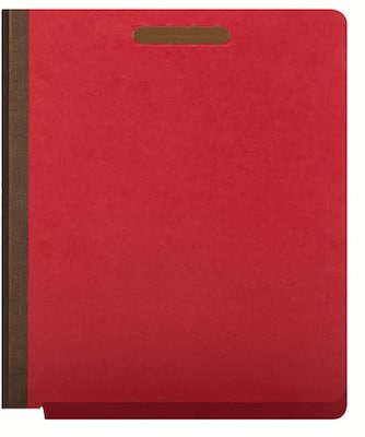 Help employees tackle mountains of paperwork with partitioned folders. Two 17-pt. brown kraft partitions rest between the ruby red 25-pt. pressboard covers, with six total fasteners to secure paperwork. Employees can organize up to 2 inches of papers in the expandable folders with the embedded fasteners on the covers. Use the red exterior as part of a color-coding system to organize different types of paperwork. A 3/4-inch undercut end tab gives a full view of labels for increased efficiency when searching for the right folder.