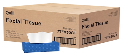 Quill Brand® Flat Box Facial Tissue, 2-Ply, White, 100 Sheets/Box, 30 Boxes/Carton (7TF830-QCCCT)