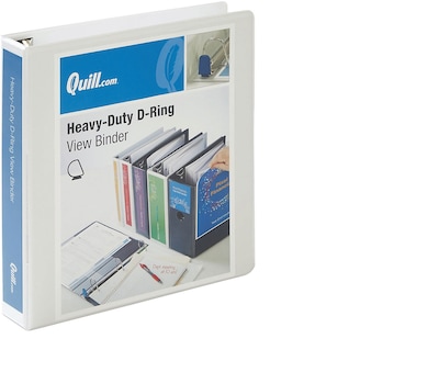 Quill Brand® Heavy Duty 1-1/2" 3 Ring View Binder, Easy Open D Rings, White (74215WE)