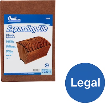 Quill Brand® Heavy-Duty Reinforced Expanding File, A-Z Index, 21 Pockets, Legal Size, Brown (723311)