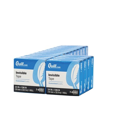 Count on Quill Brand invisible tape for a convenient and practical adhesive solution for your office. With 16 rolls of tape, a dozen employees can have one roll each, ending the borrow-and-return trips that consume valuable work time. Each roll has a 1-inch core diameter, so it fits standard desktop tape dispensers, providing quick and easy access. It's also possible to apply the tape to a surface and write on it, making it perfect for labeling items.