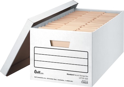 Quill Brand® 35% Recycled Corrugated Medium-Duty File Storage Boxes, Lift-Off Lid, Letter, White, 12/Carton (30824)