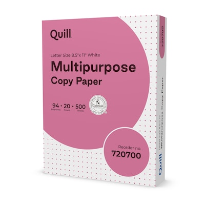 Quill Brand® 8.5" x 11" Multipurpose Copy Paper, 20lbs., 94 Brightness, 500 Sheets/Ream (720700)