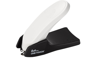 Quill Brand® One-Touch™ staple remover with a built in magnetic staple collector avoids staple mess.