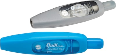 Mistakes happen, but getting rid of noticeable errors on otherwise flawless documents is nearly impossible, unless you supply your office with Quill Brand white-out correction tape pens. Quill provides an ample amount of correction tape inside of our easy-to-use pens, and you receive one grey pen and one blue pen per package.