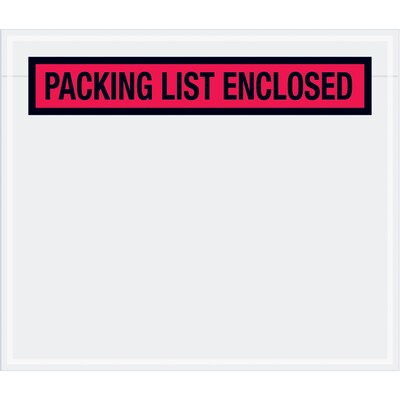 - Panel face, colored Packing List Envelopes are pre-printed with "Packing List Enclosed" on heavy 2 Mil poly.