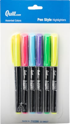 Quill Brand® Pen Style Highlighters, Chisel Point, Assorted, 6/Pack (10398-QCC)