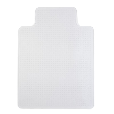 Extend the life of your medium pile carpet (up to 3/4" thick including padding depth) by protecting against chair caster wear and tear. The perfect addition to your workspace, this chair mat provides a smooth surface that enhances ergonomic comfort by allowing your rolling office chair to move freely. Easy to handle, this chair mat features rounded AnchorBar cleats (studs) that hold your mat in place and are gentle on carpets and fingers (no sharp spikes). This chair mat is made with durable vinyl that is GREENGUARD Gold Certified for low chemical emissions to promote a healthier workspace. Designed for use on carpeted surfaces only, do not use on hard floors.