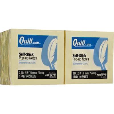 Quill Brand® Self-Stick Pop-Up Notes, 3" x 3", Yellow, 100 Sheets/Pad, 12 Pads/Pack (733P12YW)