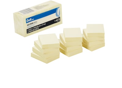 Quill Brand® Self-Stick Notes, 1 3/8" x 1 7/8", Yellow, 100 Sheets/Pad, 12 Pads/Pack (7382YW)