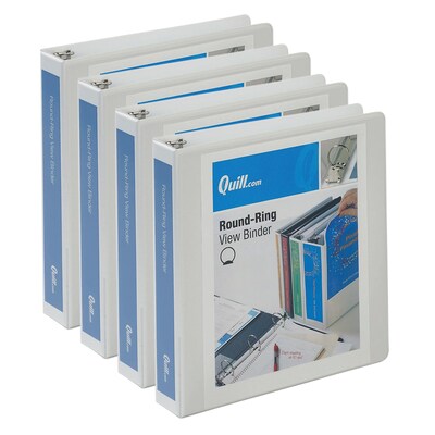 Quill Brand® Standard 1-1/2" 3 Ring View Binder, White 4/Pk