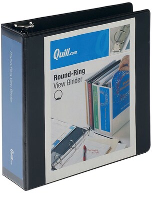 Quill Brand® 3 inch Round Ring, View Binder, Black, 6/Pack (7223BK)