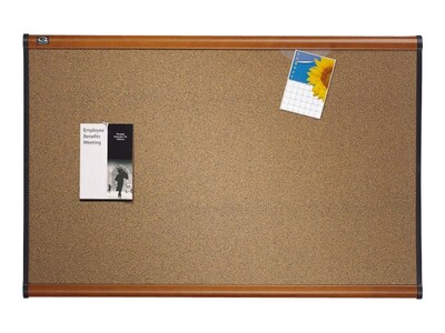 Share important information with this standard cork bulletin board. The included factory-installed mounting system makes it simple to secure this board to the wall, and the large surface area lets you display posters, print-outs and other memorable items with room to spare. With a natural self-healing cork surface, this bulletin board lets you change your display frequently without showing signs of wear. Pushpins, thumbtacks or are all you need to secure items, and an attractive oak-finish frame completes this standard cork bulletin board.