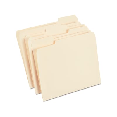 Make filing documents easy with these standard letter-size manila file folders. The oversized 1/3-cut tab layout provides ample room for file names, account numbers and other essential information, while the standard construction is ideal for everyday handling. These letter-size manila file folders feature a versatile design that's ideal for use in vertical or lateral file systems.