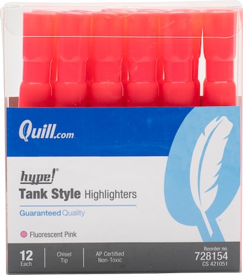 Quill Brand® Tank Style Highlighters, Chisel Tip, Fluorescent Pink, Dozen (12271-QCC)