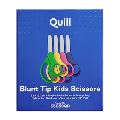 Quill Brand® Teacher Pack 5" Kids Blunt Tip Stainless Steel Scissors, Straight Handle, Right and Left Handed, 24/Pack (55059QB)