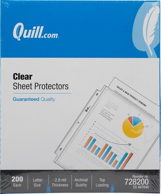 Order Quill Brand® Top-Loading Sheet Protectors, 8-1/2" x 11", Clear, 200/Box (728200) today at Quill.com and get fast shipping. Stack coupons to get free gifts & extra discounts!