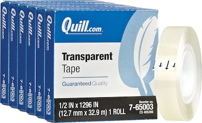 Quill Brand® Transparent Tape, 1/2" x 36 yds., 6 Rolls (765003)