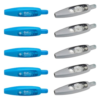 Mistakes happen, but getting rid of noticeable errors on otherwise flawless documents is nearly impossible, unless you supply your office with Quill Brand white-out correction tape pens. Quill provides an ample amount of correction tape inside of our easy-to-use pens, and you receive one grey pen and one blue penper package.