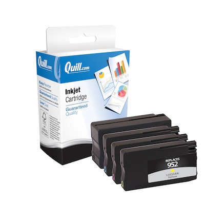 Quill Remanufactured Black/Cyan/Magenta/Yellow High Yield Ink Cartridge Replacements for HP 952/952XL, 4/Pack