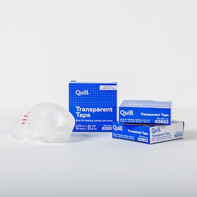 Keep your projects neat and secure with Quill Transparent Tape Refill. This clear tape is perfect for a variety of uses, providing a strong hold without obscuring important details. Each roll measures 3/4 inch in width and extends to 36 yards in length, ensuring you have plenty of tape for your needs. The pack includes three rolls, making it a convenient choice for home or office use.