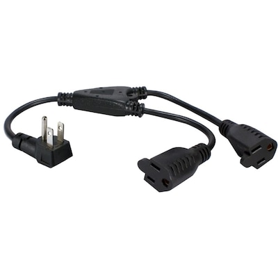 - 2-outlet, 1 x 3-pin NEMA 5-15P male on first end and 2 x 3-pin NEMA 5-15R female on second end