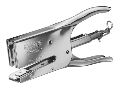 Prevent loose pages from getting lost by binding them together with this full-strip plier stapler. The sturdy metal construction provides durability and the strength needed to staple up to 40 sheets of paper together, while the contoured handle offers a solid grip. This Rapid full-strip plier stapler boasts an adjustable anvil, letting you use it for open or closed operation as needed.