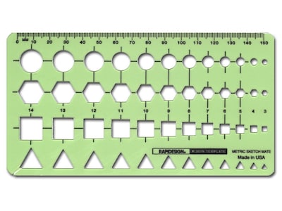 Rapidesign General Drafting & Design Templates, Metric Sketch Circle, Hex, Square, Triangle (14055)