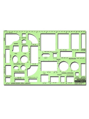 A variety of inking and drafting plastic templates made for the needs of architects and interior designers. Brands include Berol Rapidesign, Pro Art, and Pickett. Unless otherwise specified, scale is 1/4 in. = 1 foot.