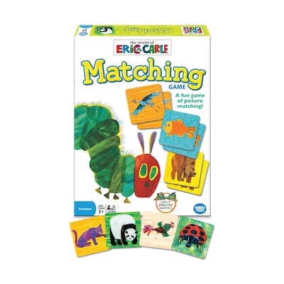 It's the classic game of picture matching, featuring your favorite characters from the world of Eric Carle. Flip over brightly colored tiles and find pictures from the very hungry caterpillar, the Grouchy ladybug, brown bear, Brown bear, what do you see", and more. What familiar faces will you see" Pick up the most matching pairs to win.