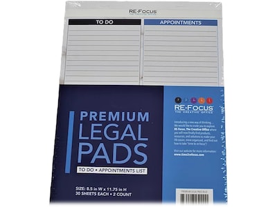 A professional legal pad of to-do lists and appointments by RE-FOCUS THE CREATIVE OFFICE designed to make your life easier, more organized and give you time to refocus.
