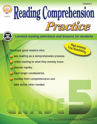 Aligned with current state standards, Reading Comprehension for grade 5 strengthens comprehension skills through varied passages, vocabulary exercises, and comprehension questions. Designed to help all students succeed, this differentiated reading resource provides practice for below-, on-, and above-level readers.