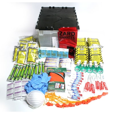Ready America™ Rapid Care Emergency kit packed in a convenient carry and store tote is ideal for group of 10. Kit includes emergency lighting, food bars, water packet, survival blanket and all-purpose first aid.