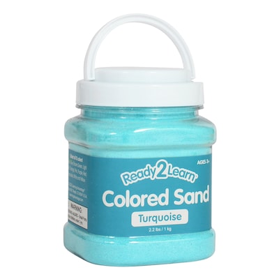 This jar contains 2.2 lbs. of decorative turquoise sand. Colored sand is a versatile addition to any crafting supply collection or sensory bin. Adhere sand to 2D art projects for color and texture. Create layered 3D sand art in jars, bottles, glasses, flower vases, shadowboxes and more. Or, incorporate sand into a variety of sensory stations and activities. Crafting with sand contributes to the development of children's fine motor skills, hand-eye coordination and creative expression. The jar features a lid and a handle for easy cleanup, storage and travel. This sand is non-toxic. For ages 3+. Size of jar: 3.25"L x 3.5"W x 5"H.