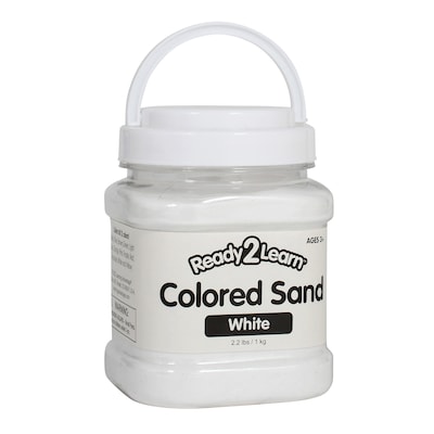 This jar contains 2.2 lbs. of decorative white sand. Colored sand is a versatile addition to any crafting supply collection or sensory bin. Adhere sand to 2D art projects for color and texture. Create layered 3D sand art in jars, bottles, glasses, flower vases, shadowboxes and more. Or, incorporate sand into a variety of sensory stations and activities. Crafting with sand contributes to the development of children's fine motor skills, hand-eye coordination and creative expression. The jar features a lid and a handle for easy cleanup, storage and travel. This sand is non-toxic. For ages 3+. Size of jar: 3.25"L x 3.5"W x 5"H.