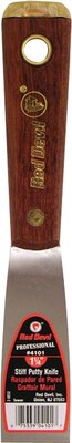 Red Devil® Professional 4100 Series Stiff putty knife has 2" blade made of lacquered steel and a polished wood handle for easy holding. Knife features a hang hole for easy storage and has solid steel nail setting head.