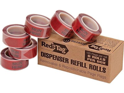 Save time by showing clients exactly where to sign with these red flags. They fit securely on the page but can be repositioned, thanks to removable adhesive. With these rolls of 120 Redi-Tag flags, you can refill when needed to keep efficiency high.