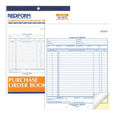 Rediform® Purchase Order Book, Carbonless, Numbered, 8 1/2" x 11", 50 Duplicate Sets (1L146)