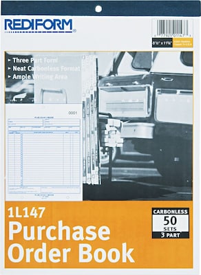 Rediform 3-Part Carbonless Purchase Order, 8 1/2" x 11", 50 Sets/Book (1L147)