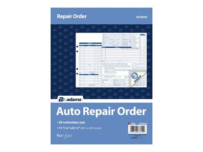 Adams 3-Part Carbonless Auto Repairs, 11.44"L x 8.5"W, 50 Sets/Book (GT3810)