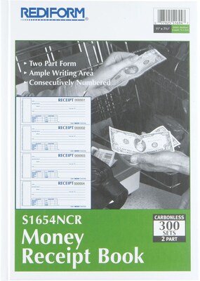 Order Rediform Carbonless Money Receipt Books, 11" x 8", 2-Part, 300 Sets (S1654NCR) today at Quill.com and get fast shipping. Stack coupons to get free gifts & extra discounts!