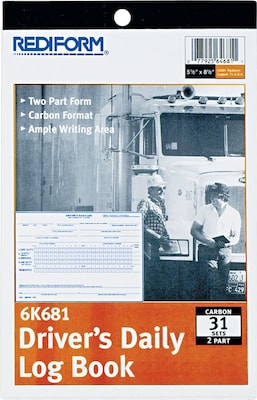 Rediform 2-Part Carbonless Driver's Daily Logs, 9.13"L x 5.5"W, 31 Sets/Book (REDS5031NCL)