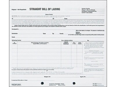 Rediform® Bill Of Lading, Snap-A-Way, Individual, Ruled Forms, 8 1/2" x 7", 250 Triplicates (44301)